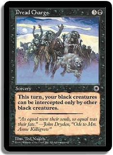 This turn, your black creatures can be intercepted only by other black creatures.