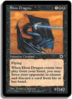 When Ebon Dragon comes into play from your hand, you may force your opponent to choose and discard a card from his or her hand.