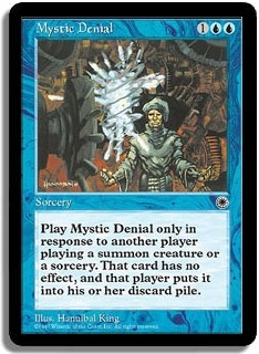Play Mystic Denial only in response to another player playing a summon creature or a sorcery. That card has no effect, and that player puts it into his or her discard pile.