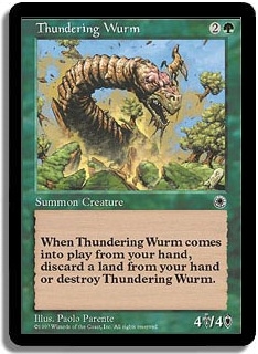 When Thundering Wurm comes into play from your hand, discard a land from your hand or destroy Thundering Wurm.