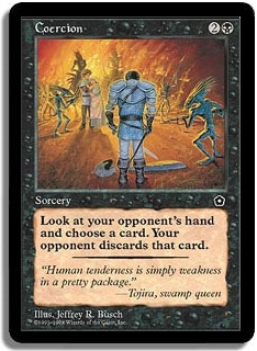 Look at your opponent's hand and choose a card. Your opponent discards that card.