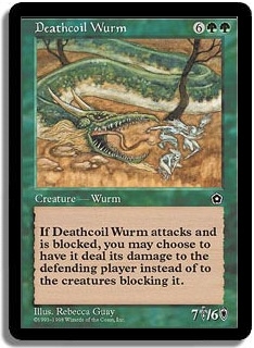 If Deathcoil Wurm attacks and is blocked, you may choose to have it deal its damage to the defending player instead of to the creatures blocking it.