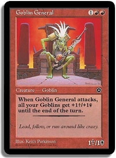 When Goblin General attacks, all your Goblins get +1S/+1D until the end of the turn.