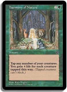 Tap any number of your creatures. You gain 4 life for each creature tapped in this way. (Tapped creatures can't block.)