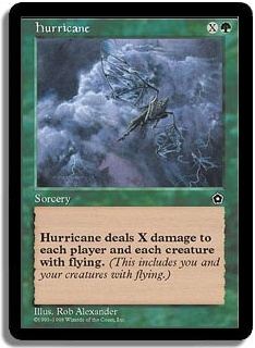 Hurricane deals X damage to each player and each creature with flying. (This includes you and your creatures with flying.)