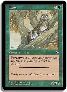 Forestwalk (If defending player has any forests in play, Lynx can't be blocked.)