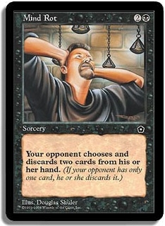 Your opponent chooses and discards two cards from his or her hand. (If your opponent has only one card, he or she discards it.)