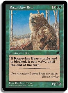 If Razorclaw Bear attacks and is blocked, it gets +2S/+2D until the end of the turn.