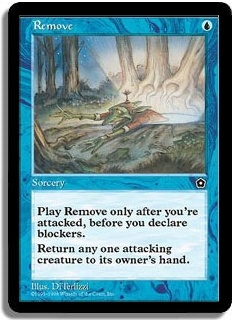 Play Remove only after you're attacked, before you declare blockers. Return any one attacking creature to its owner's hand.