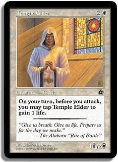 On your turn, before you attack, you may tap Temple Elder to gain 1 life.