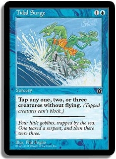 Tap any one, two, or three creatures without flying. (Tapped creatures can't block.)