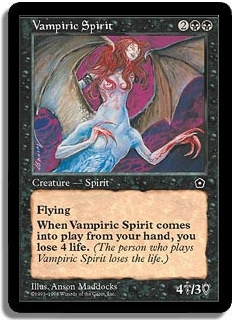 Flying When Vampiric Spirit comes into play from your hand, you lose 4 life. (The person who plays Vampiric Spirit loses the life.)