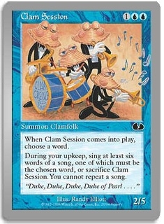 When Clam Session comes into play, choose a word. During your upkeep, sing at least six words of a song, one of which must be the chosen word, or sacrifice Clam Session. You cannot repeat a song.