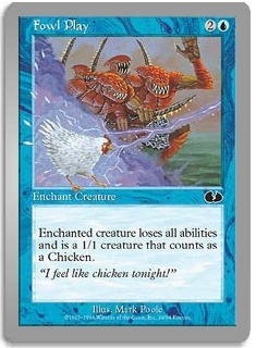 Enchanted creature loses all abilities and is a 1/1 creature that counts as a Chicken.