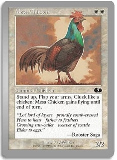 Stand up, Flap your arms, Cluck like a chicken: Mesa Chicken gains flying until end of turn.