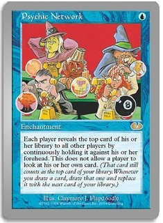 Each player reveals the top card of his or her library to all other players by continuously holding it against his or her forehead. This does not allow a player to look at his or her own card. (That card still counts as the top card of your library. Whenever you draw a card, draw that one and replace it with the nect card of your library.)