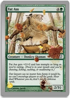 Fat Ass gets +2/+2 and has trample as long as you're eating. (Food is in your mouth and you're chewing, licking, sucking, or swallowing it.)