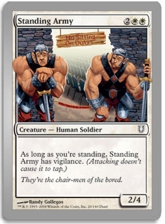 As long as you're standing, Standing Army has vigilance. (Attacking doesn't cause it to tap.)