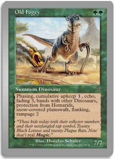 "These kids today with their collector numbers and their newfangled tap symbol. Twenty Black Lotuses and twenty Plague Rats. Now that's real Magic."