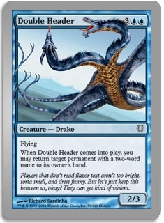 Flying When Double Header comes into play, you may return target permanent with a two-word name to its owner's hand.