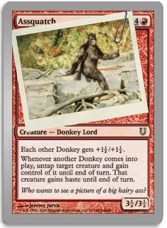 Each other Donkey gets +1½/+1½. Whenever another Donkey comes into play, untap target creature and gain control of it until end of turn. That creature gains haste until end of turn.