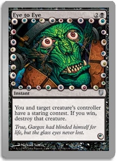 You and target creature's controller have a staring contest. If you win, destroy that creature.
