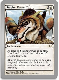 As long as Staying Power is in play, "until end of turn" and "this turn" effects don't end.