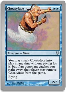 You may sneak Cheatyface into play at any time without paying for it, but if an opponent catches you right away, that player may remove Cheatyface from the game. Flying