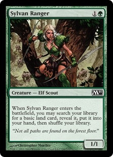 When Sylvan Ranger enters the battlefield, you may search your library for a basic land card, reveal it, put it into your hand, then shuffle your library.