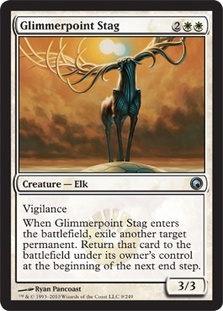 Vigilance When Glimmerpoint Stag enters the battlefield, exile another target permanent. Return that card to the battlefield under its owner's control at the beginning of the next end step.