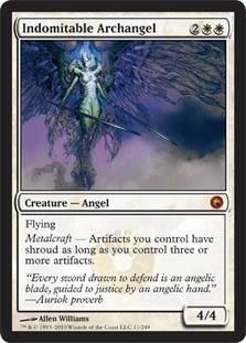 Flying Metalcraft - Artifacts you control have shroud as long as you control three or more artifacts.