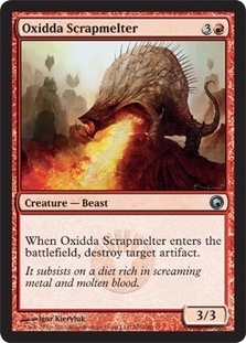 When Oxidda Scrapmelter enters the battlefield, destroy target artifact.