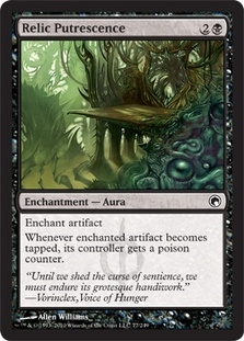 Enchant artifact Whenever enchanted artifact becomes tapped, its controller gets a poison counter.