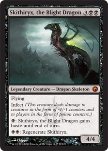 Flying Infect (This creature deals damage to creatures in the form of -1/-1 counters and to players in the form of poison counters.) B: Skithiryx, the Blight Dragon gains haste until end of turn. BB: Regenerate Skithiryx.