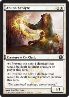 Tap: Prevent the next 1 damage that would be dealt to target creature or player this turn. Tap: Prevent the next 2 damage that would be dealt to target artifact creature this turn.