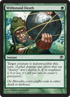 Target creature is indestructible this turn. (Lethal damage and effects that say "destroy" don't destroy it. If its toughness is 0 or less, it's still put into its owner's graveyard.)