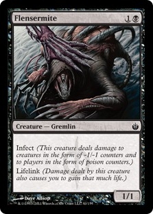 Infect (This creature deals damage to creatures in the form of -1/-1 counters and to players in the form of poison counters.) Lifelink (Damage dealt by this creature also causes you to gain that much life.)