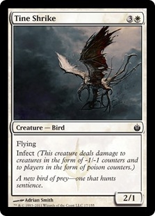 Flying Infect (This creature deals damage to creatures in the form of -1/-1 counters and to players in the form of poison counters.)
