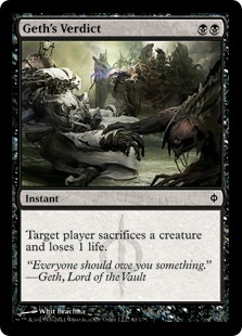 Target player sacrifices a creature and loses 1 life.