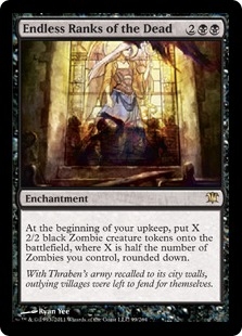 At the beginning of your upkeep, put X 2/2 black Zombie creature tokens onto the battlefield, where X is half the number of Zombies you control, rounded down.