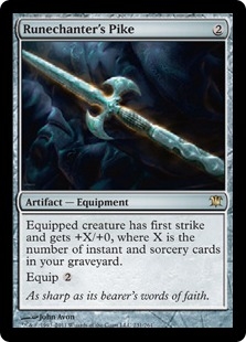 Equipped creature has first strike and gets +X/+0, where X is the number of instant and sorcery cards in your graveyard. Equip 2