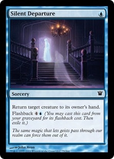 Return target creature to its owner's hand. Flashback 4U (You may cast this card from your graveyard for its flashback cost. Then exile it.)