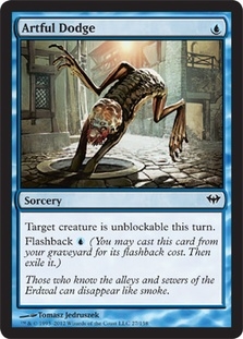 Target creature is unblockable this turn. Flashback U (You may cast this card from your graveyard for its flashback cost. Then exile it.)