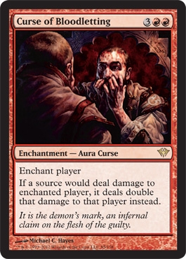 Enchant player If a source would deal damage to enchanted player, it deals double that damage to that player instead.