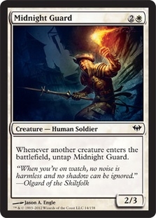 Whenever another creature enters the battlefield, untap Midnight Guard.