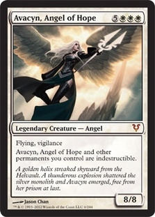 Flying, vigilance Avacyn, Angel of Hope and other permanents you control are indestructible.