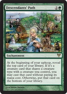 At the beginning of your upkeep, reveal the top card of your library. If it's a creature card that shares a creature type with a creature you control, you may cast that card without paying its mana cost. Otherwise, put that card on the bottom of your library.