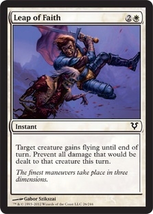 Target creature gains flying until end of turn. Prevent all damage that would be dealt to that creature this turn.