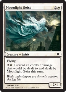 Flying 3W: Prevent all combat damage that would be dealt to and dealt by Moonlight Geist this turn.