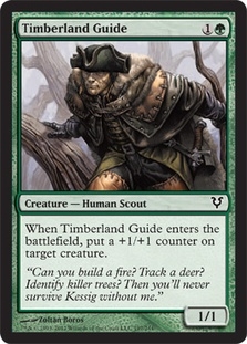When Timberland Guide enters the battlefield, put a +1/+1 counter on target creature.
